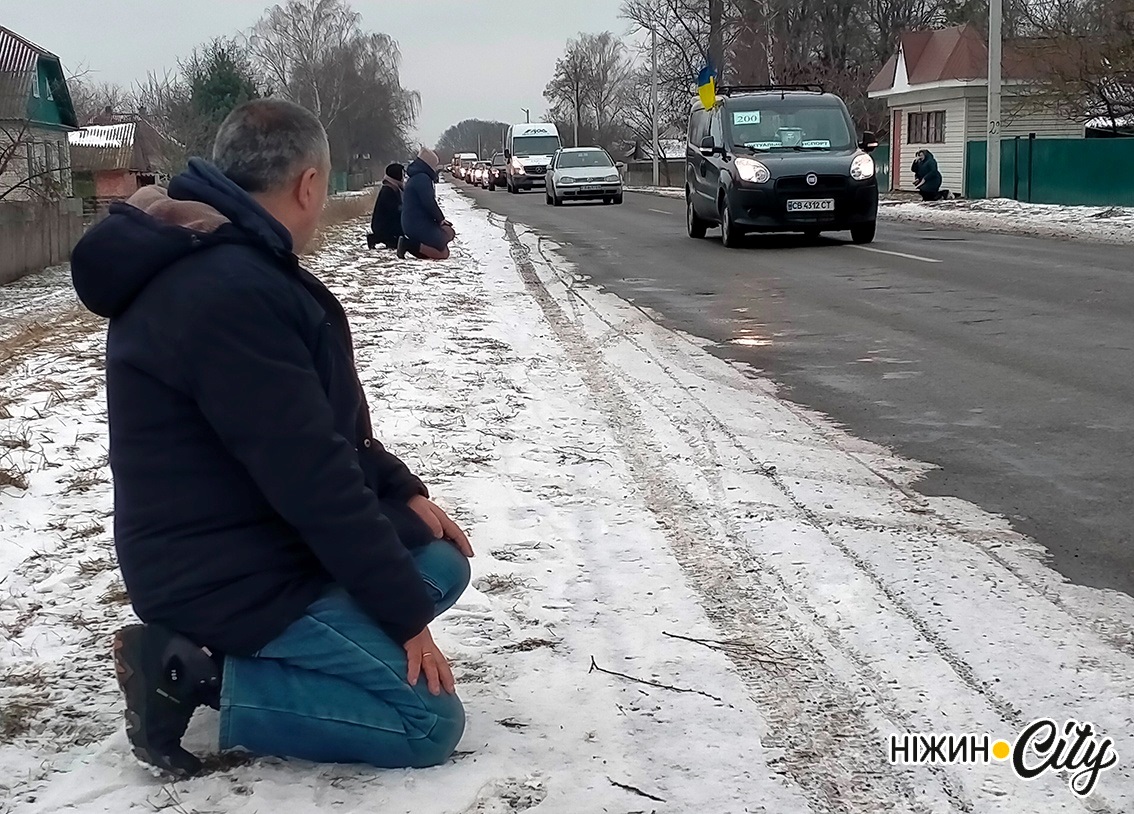 Земляки живим коридором зустріли Героя. Від поста до самого дому стояли на колінах односельці схиливши в жалобі голови.