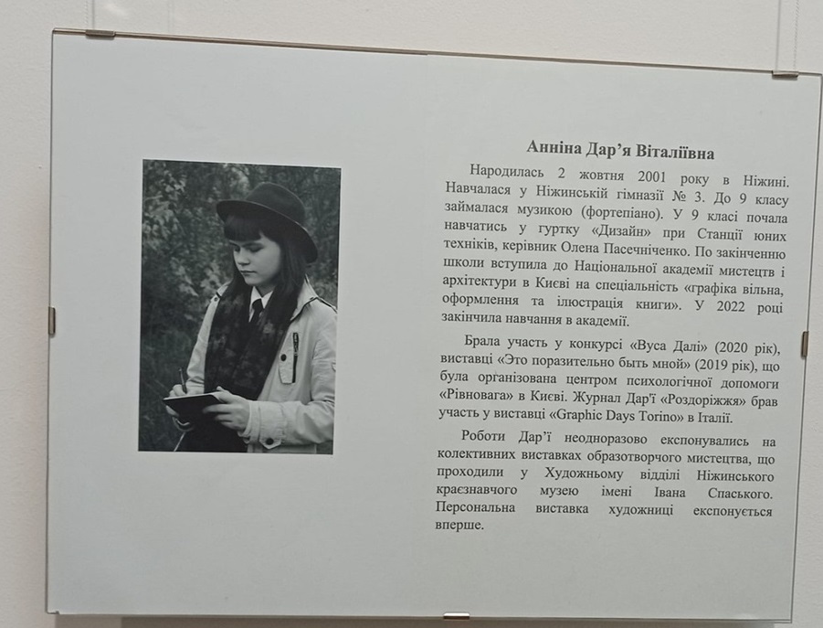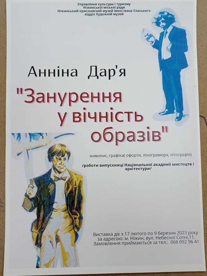 17 лютого у Художньому відділі Ніжинського коаєзнавчого музею ім. Спаського відкрилась виставка «Занурення у вічність образів» юної художниці Дарʼї Анніної.