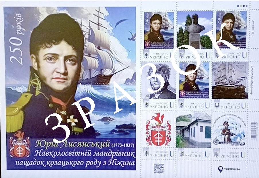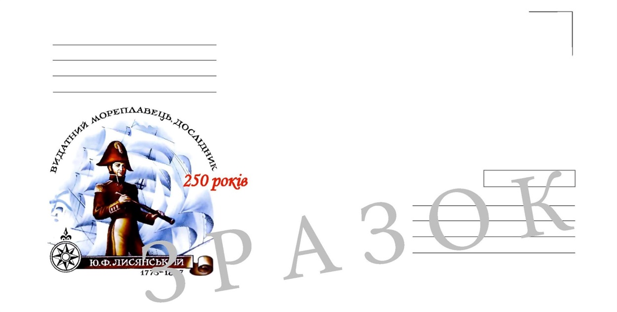 При вашому бажанні, конверти можуть бути проштемпельовані спеціальним художнім штампом. Оскільки, у зв'язку з військовим станом, ми маємо значні бюджетні обмеження, сувенірна продукція буде друкуватися лімітованим тиражем. Тому ми вирішили оголосити передзамовлення на сувенірну продукцію, щоб заздалегідь сформувати остаточний пакет замовлення. Передзамовлення триватиме до 25 березня 2023 року. Частину коштів від реалізації листівок, конвертів та поштових марок, присвячених 250-річчю Юрія Лисянського, буде перераховано на потреби ЗСУ.