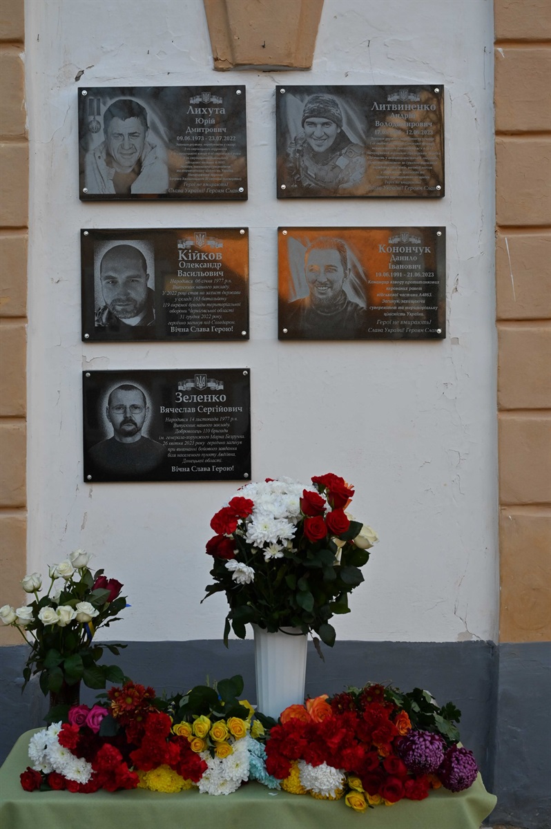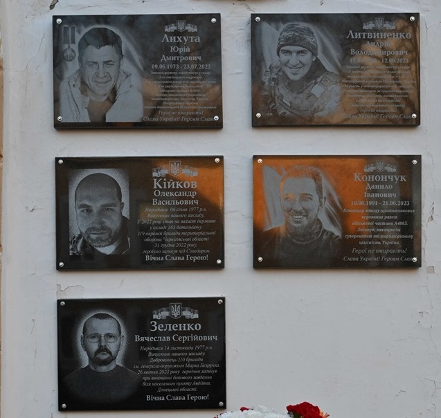 21 листопада у Ніжинській гімназії №1 відкрили меморіальні дошки в памʼять про загиблих Героїв, які загинули в російсько-українській війні, і які свого часу закінчили цей учбовий заклад: Вячеславу Зеленку, Данилу Конончуку, Олександру Кійкову, Андрію Литвиненку, Юрію Лихуті.