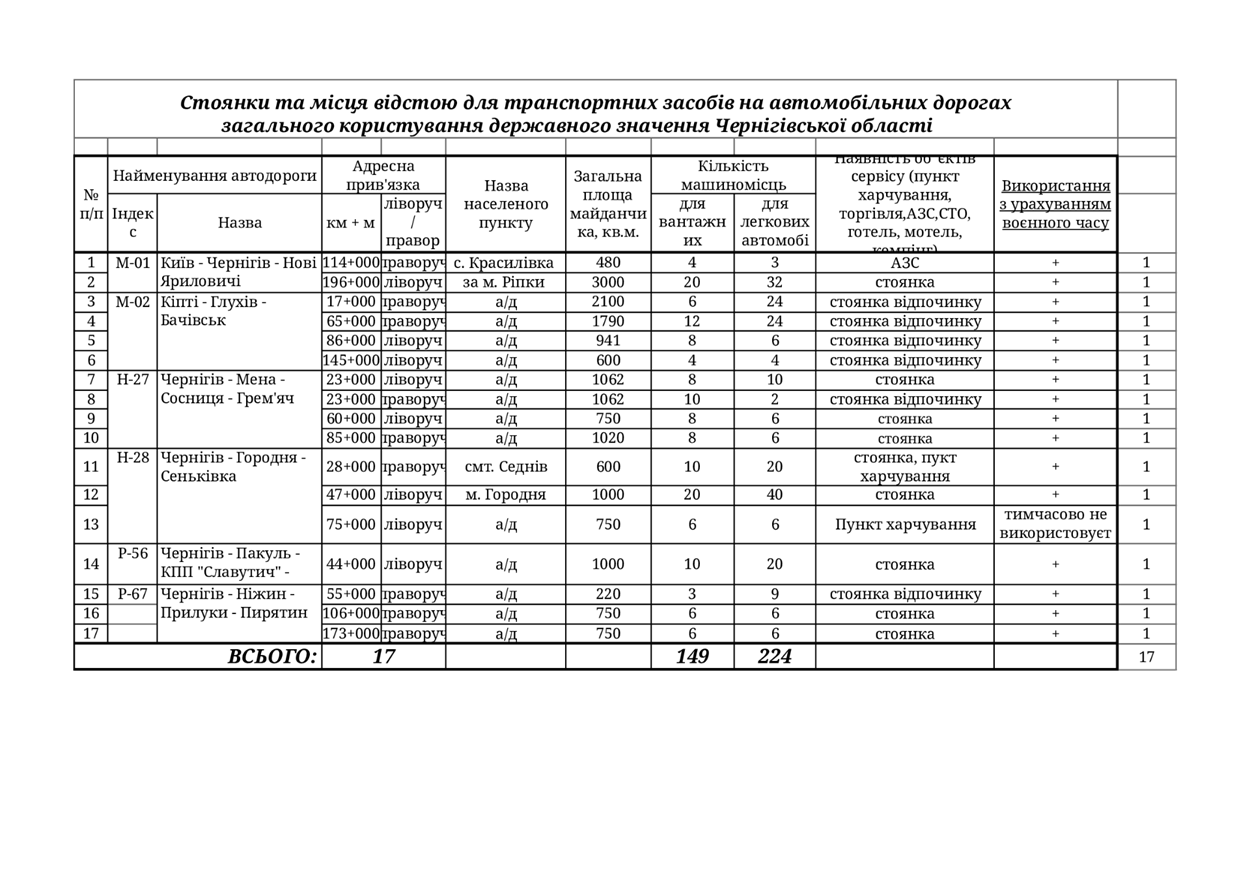 Для тимчасової стоянки транспортних засобів будуть використовуватися 16 майданчиків в смугах відведення автомобільних доріг.