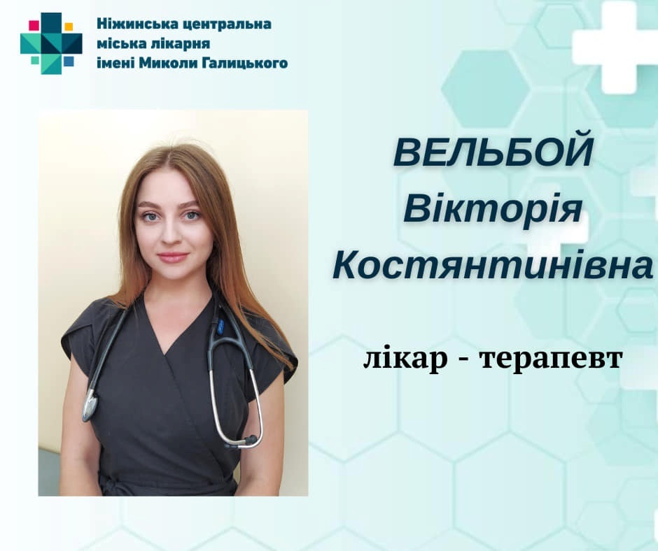- ВЕЛЬБОЙ Вікторія Костянтинівна, закінчила Сумський державний університет, лікар-терапевт, подальша спеціалізація - "Інтервенційна кардіологія".