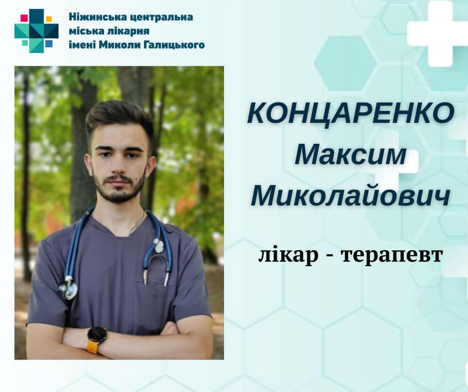 - КОНЦАРЕНКО Максим Миколайович, закінчив Полтавський державний медичний університет, лікар-терапевт, подальша спеціалізація - "Інтервенційна кардіологія".