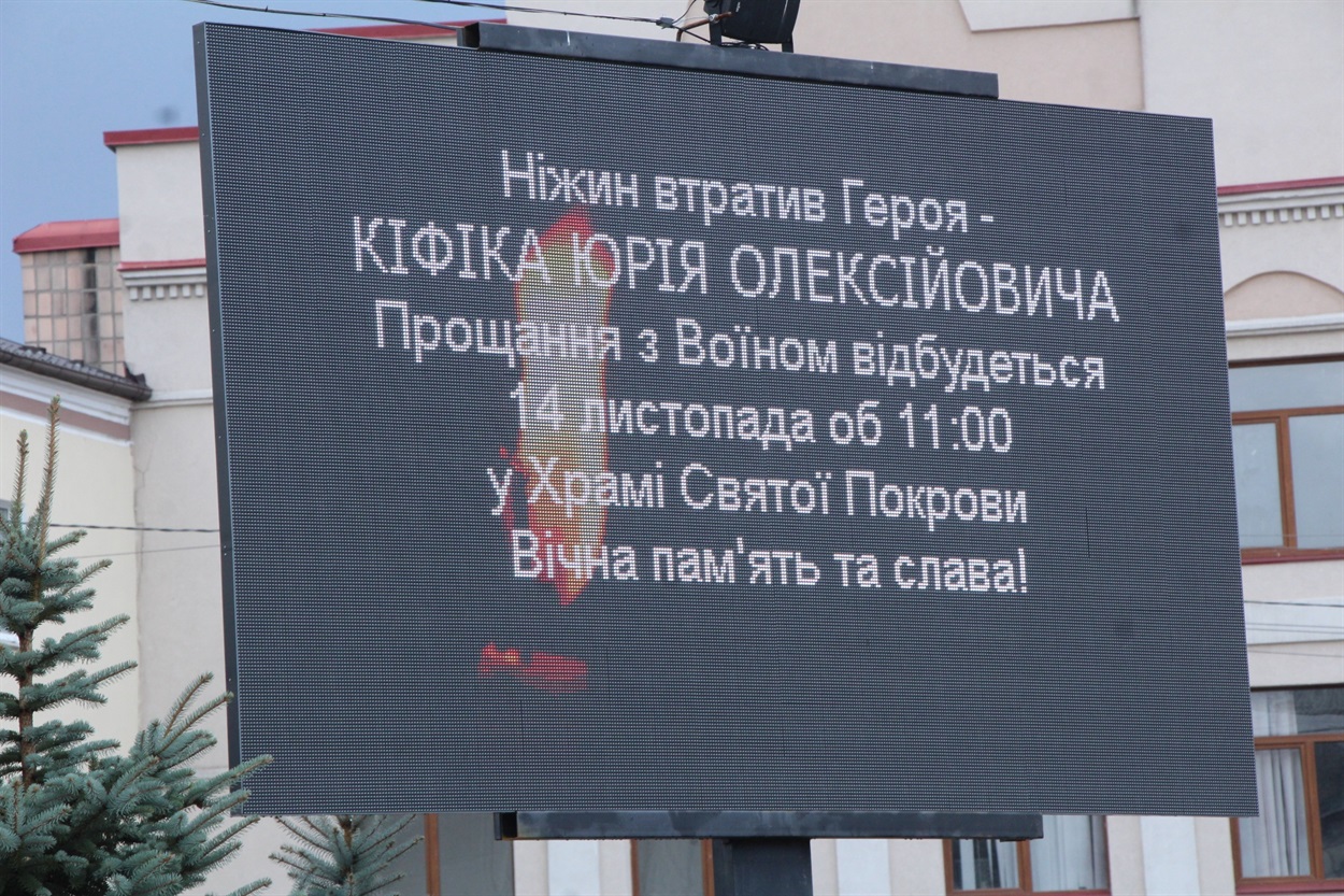 14 листопада у Ніжинській громаді попрощалися з полеглим військовим - КІФІКОМ ЮРІЄМ ОЛЕКСІЙОВИЧЕМ 21.02.1978 р.н, який відважно та мужньо брав участь в обороні нашої держави.