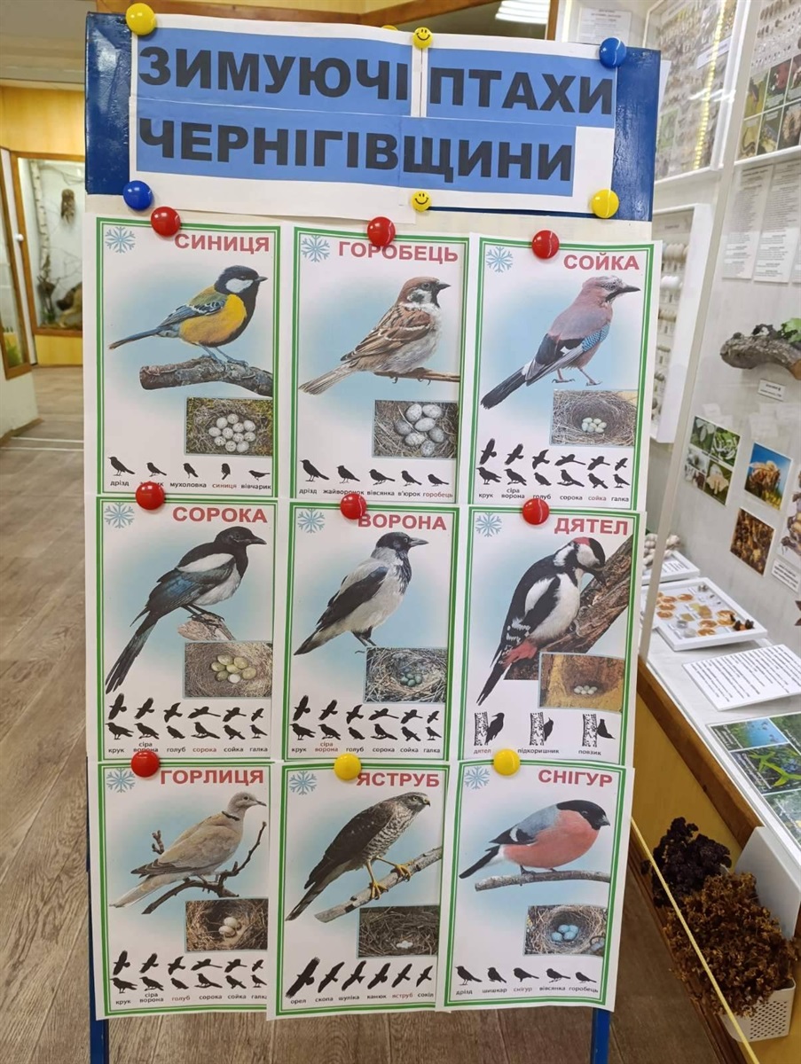 В експозиційних залах екскурсанти ознайомились з цікавими експонатами відділу, а також з експонатами та інформаційним матеріалом виставки. Під час екскурсії відвідувачі мали змогу поринути у дивовижний світ природи Чернігівщини, поглибити знання про особливості життя зимуючих птахів в умовах суворої пори року та побачити зимовий раціон пернатих зимувальників.