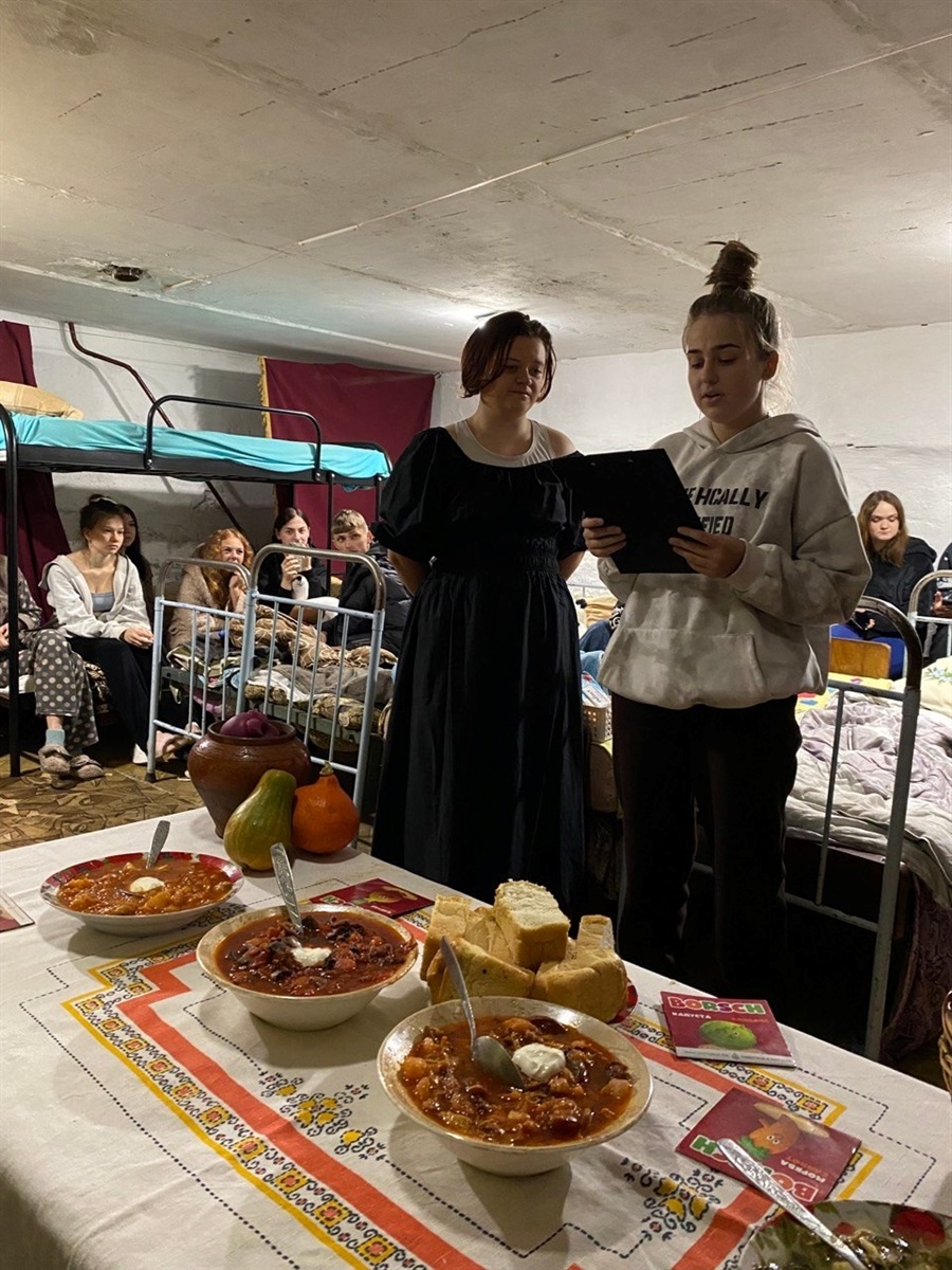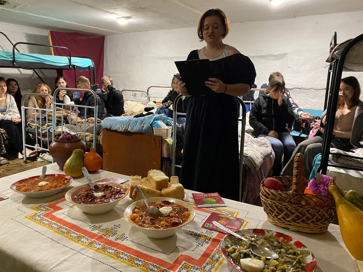 Попри затяжні повітряні тривоги та постійні вибухи, 8 жовтня в укритті гуртожитку панувала зовсім інша атмосфера — домашнього затишку, добра та єднання. Студенти разом із вихователем влаштували справжній фестиваль борщу.