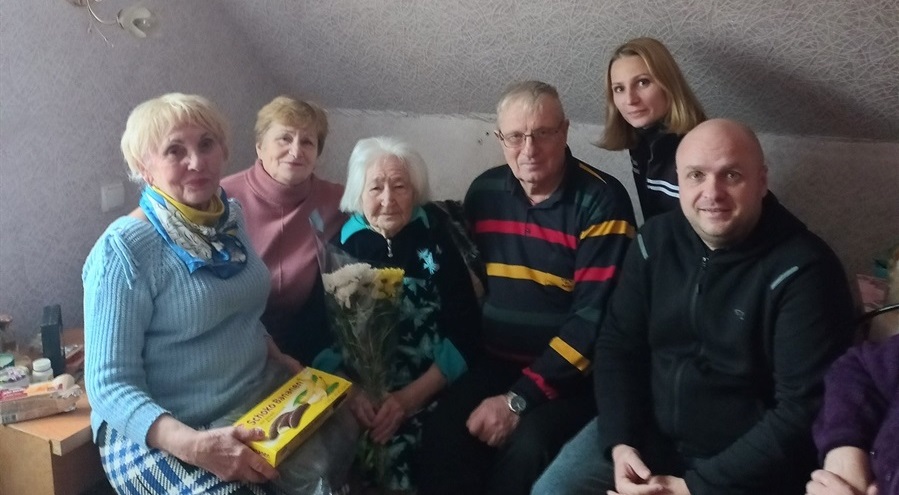 От і наша ювілярка, 95 річна Галина Василівна Совенко, як тільки ми її привітали квітами, подарунками (Ніжинська організація ветеранів) і нам вона відразу вручила красиві сумки, які власноруч пошила декілька днів тому. Були приємно вражені. З розмови зрозуміли, що пані Галина була модельєром одягу, у неї шили одяг всі (від пересічних громадян до керівництва). Все життя очолювала будинок побуту у Комарівці (Борзнянщина). Має багато нагород, серед яких орден ''Знак пошани" в 1978 р. Галина Василівна народилась в Новоросійську, а в 1942 році багато людей посадили на баржу і відправили до Криму. Ця баржа була живим щитом для баржі з німцями. В Криму познайомилась з моряком Леонідом, одружились і поїхали в Комарівку. Збудували дім, народили трьох доньок, дали їм освіту. Після смерті чоловіка в 1989 році донька Люба забрала маму до Ніжина. У них великий будинок, велика дружня родина і поряд мудра бабуся, їх Берегиня. Сьогодні її вітали сестри, 6 онуків, 9 правнуків, сусіди, рідня. Один зять служить в ЗСУ і вся родина постійно допомагає його частині. Галина Василівна добре орієнтується в сьогоденні, мріє дочекатись розквіту України. Як нам сказала: "У мене ще час є, все побачу...!" Галино Василівно, нехай Ваші мрії здійсняться, нехай буде вся Ваша родина щаслива. Здоров'я, миру та добра!