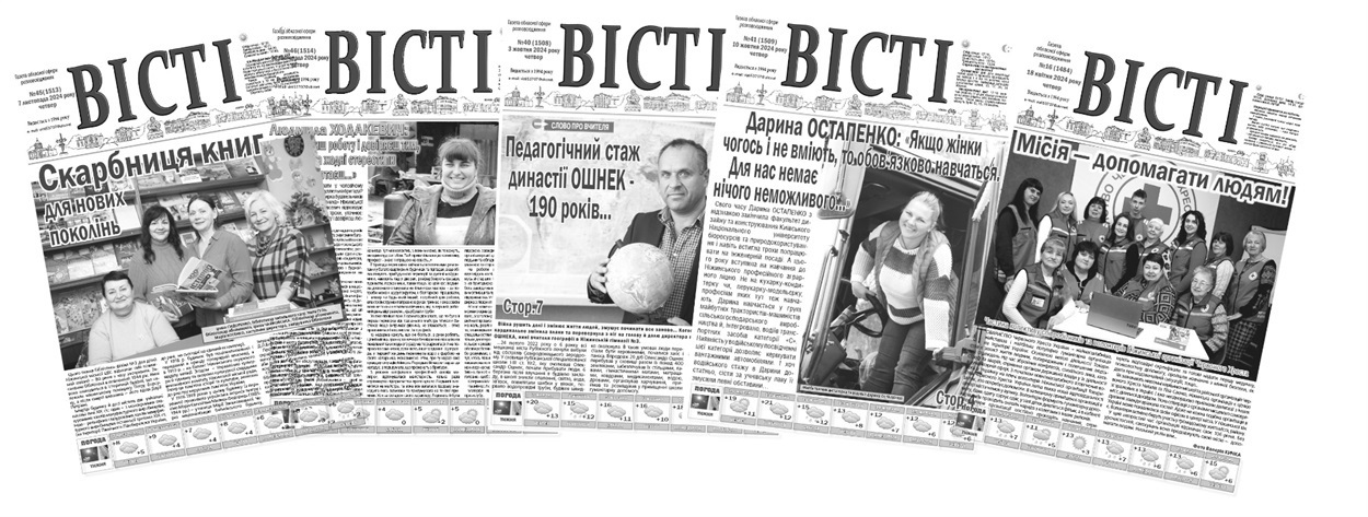 Ця газета стала єдиною в області й однією з небагатьох в Україні серед комунальних засобів масової інформації, які народилися вже у новій, незалежній державі. Її сьогоднішній порядковий номер вже перетнув півторитисячний рубіж, саме стільки разів друкована версія «Вістей» щотижня добрим другом, співрозмовником і порадником заходить в оселі й серця своїх передплатників та шанувальників. Наразі у щоденному режимі її інформаційно доповнюють однойменна фейсбук-сторінка газети та сайт «Ніжин.City».