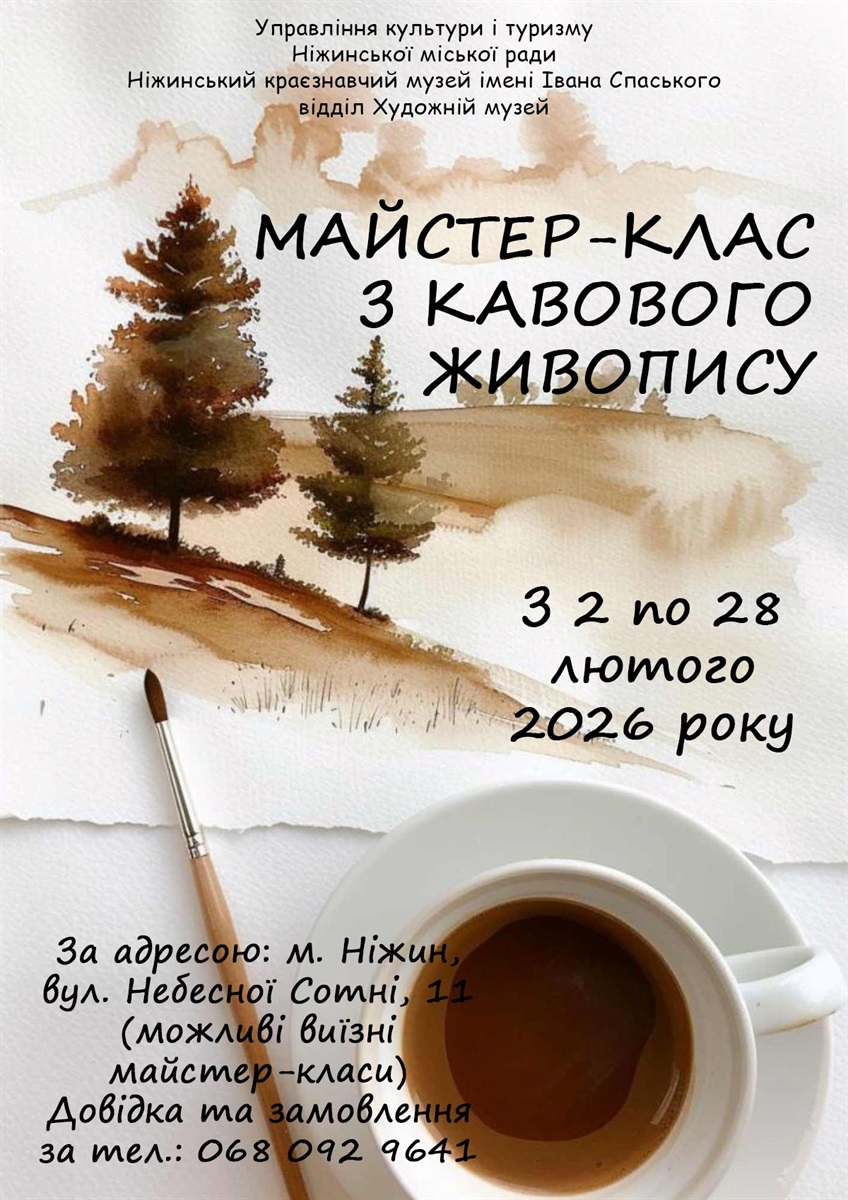 Запрошення на затишний майстер-клас з кавового живопису, де кава – не напій, а фарба, а папір – місце для маленького дива. Легкий аромат кави, м’які відтінки сепії та спокійна творча атмосфера зігріють Вас в останній місяць зими.