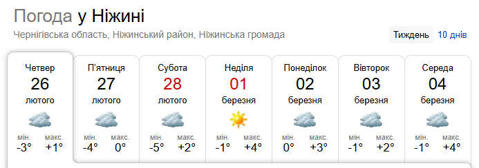 Прогноз погоди на 27-28 лютого та 1-3 березня по області