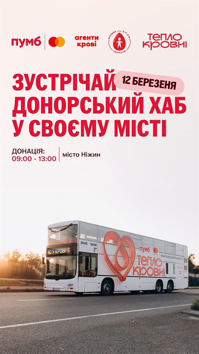 Мобільний донорський хаб «Теплокровні» 12 березня – у Ніжині. Долучайтеся, адже Ваша кров - це порятунок життя інших людей! Про це інформує nizhyn.rada