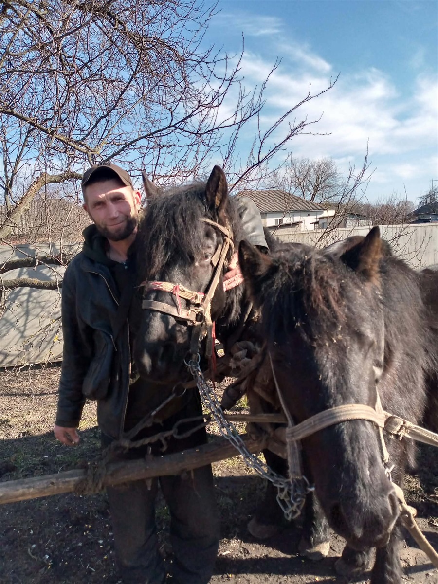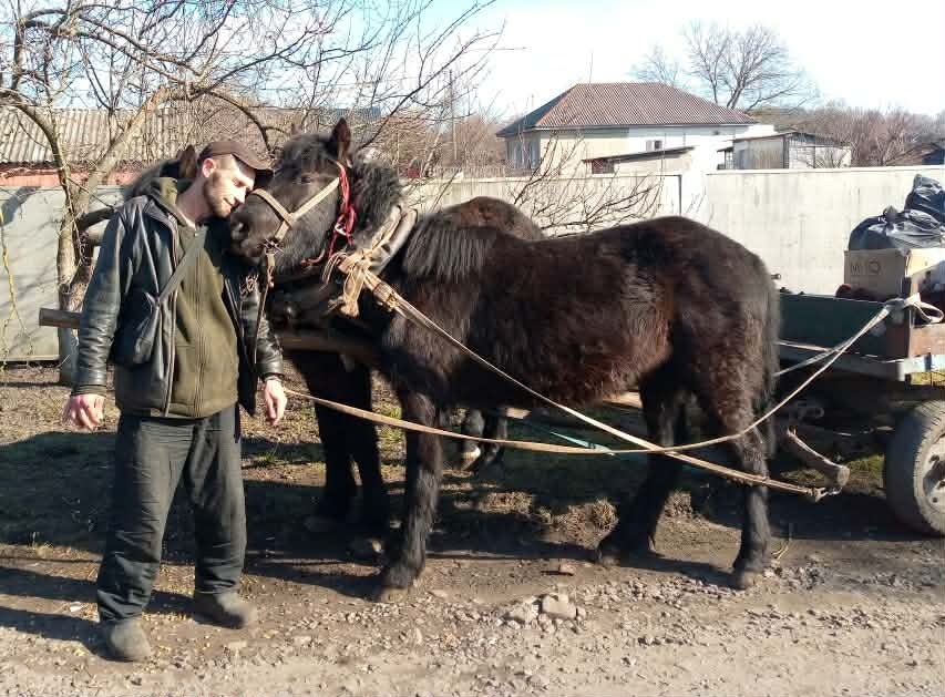 У селі кінні підводи - вже рідкість, а у місті й поготів. Знайомтесь - це Ващенко Олександр з Ніжина та його вірні помічники – Чирва та Сокол. Олександр тримає коней понад десять років.