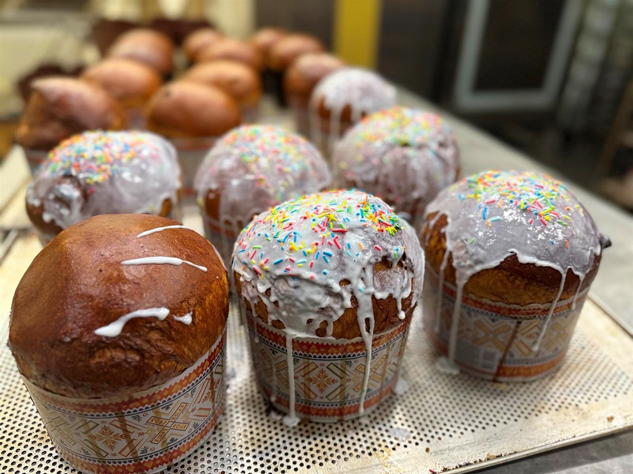 Напередодні Великодніх свят робота тут кипить від самісінького раночку: майстрині з любов'ю замішують тісто за своїм, вже перевіреними рецептами, додаючи найкращі інгредієнти – натуральне масло, родзинки, цукати, духмяні спеції.Замішування тіста, його вистоювання та прикрашання глазур'ю – кожен етап виконується вручну, з увагою до всіх найдрібніших деталей. І хоч у зв'язку з підвищеним попитом на їхні пасочки працювати працівницям мініпекарні доводиться працювати у посиленому режимі, майстрині не нарікають.