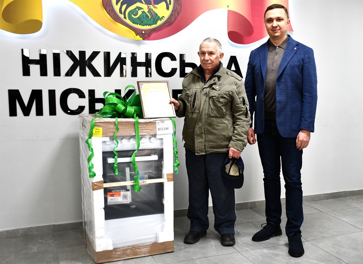 Міський голова Олександр Кодола щиро подякував Івану Павловичу за добросовісну, сумлінну працю по забезпеченню чистоти та порядку утримання вуличної й дворової території ліцею при Ніжинському державному університету ім. М. Гоголята вручив переможцю приз – газову плиту.