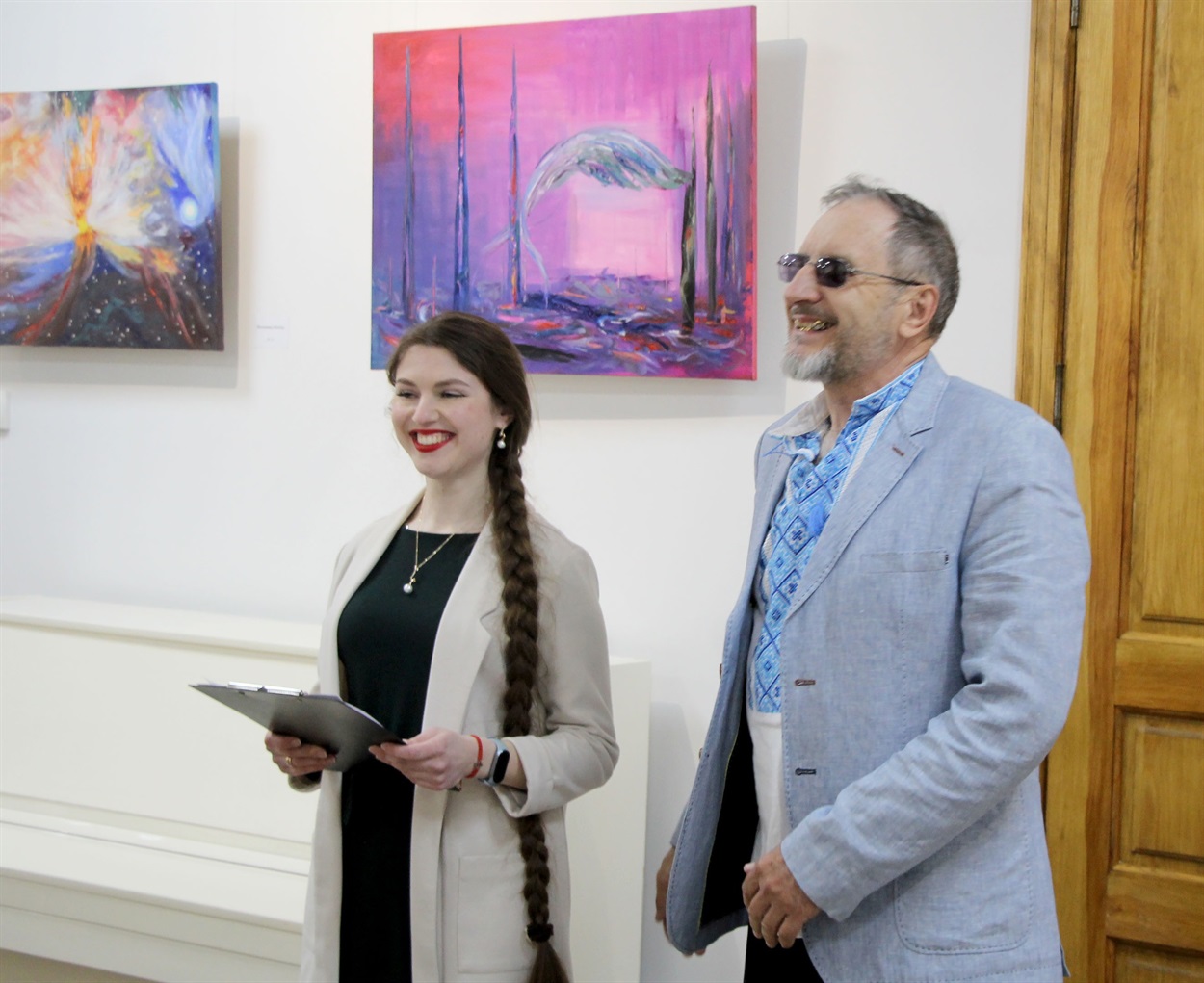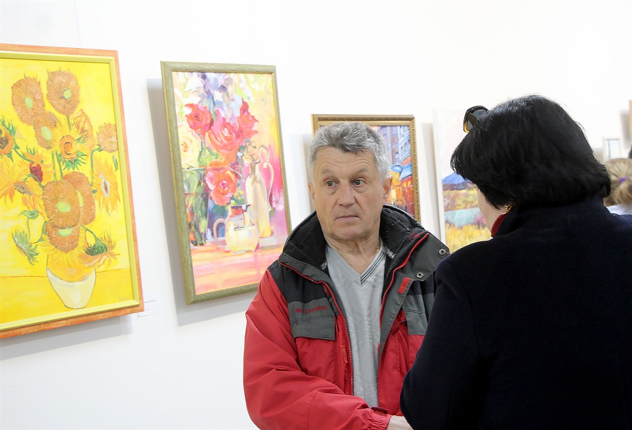 «Донька порадила дивитися відеоуроки з малювання, подарувала пензлі та фарби. Я дослухався до неї і почав навчатися. Спочатку перемальовував картини, які мені подобалися, а згодом почав створювати власні роботи», — ділиться з присутніми гостями Володимир Полуда.