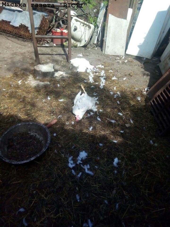 «З них хтось висмоктав кров, гребінці були бліді, під лопатками дірочки, а нутрощі понівечених тварин неушкоджені. Я виявила курей близько 4 ранку. У нас місячна маленька дитина, тож сплю чутко, доводиться вставати вночі не раз. Зараз жарко, кватирки відчинені, але нічого не чула - ні шуму, ні крику. Маємо пса мисливської породи, він ночував в будинку, але ні гавкав, ні скулив. Я встала до дитини, виглянула у вікно, бачу щось біліє, вийшла у двір, дивлюся - три курки лежать, пішла до сараю, а там ще більше десятка. Лишились живі пару курок, півень та дві качки. Коли пес вибіг за мною, то сліду не взяв, тільки дивився розгублено. Сарай на замок не був замкнений, тільки зачинені двері. Ми вже не знаємо, що думати, припускаємо лише, що то може бути тхір чи куниця. Дохлих курей закопали у себе у дворі», - розповідає Оксана Ігорівна.