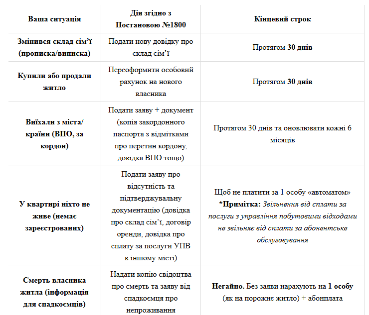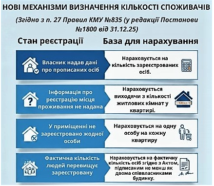 Ці зміни впроваджують нові підходи до визначення кількості споживачів та чітко регламентують процедуру звільнення від оплати у разі тимчасової відсутності.