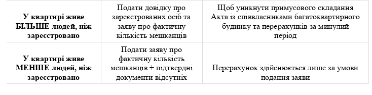 Юридичний нюанс! ВИКОНАВЕЦЬ ПОСЛУГИ МАЄ ПРАВО САМОСТІЙНО ВСТАНОВИТИ ФАКТИЧНУ КІЛЬКІСТЬ СПОЖИВАЧІВ ШЛЯХОМ СКЛАДАННЯ АКТА, копія якого надсилається власнику рекомендованим листом протягом п’яти робочих днів.