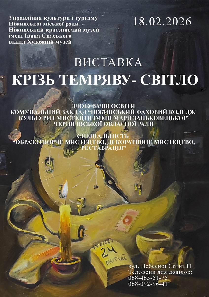 18 лютого 2026 року у відділі Художньому музеї Ніжинського краєзнавчого музею імені Івана Спаського відбудеться відкриття виставки «Крізь темряву – світло».